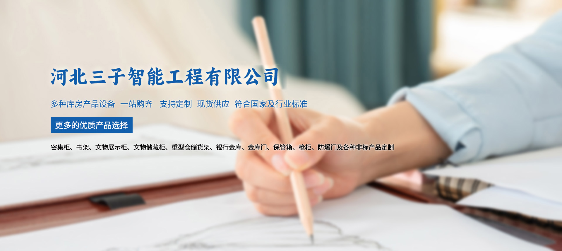 河北三子智能工程有限公司主營密集柜、書架、文物展示柜、文物儲藏柜、重型倉儲貨架、銀行金庫、金庫門、保管箱、槍柜、防爆門及各種非標產品定制。我們集研發(fā),設計,生產,銷售和服務于一體,擁有國內先進的設備和專業(yè)的制作團隊,我們秉承踏實,創(chuàng)新,責任的企業(yè)精神服務于檔案存儲,倉儲物流,農業(yè)部,博物館,美術館,銀行,部隊,學校等多個領域,我們始終堅持用戶至上和精益求精為客戶提供優(yōu)質的產品及服務。
